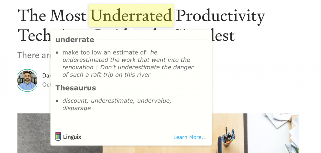 We want to help you build a stronger vocabulary base, even when you’re just browsing the web. Now, when you have our extension installed, just right-click on any unknown word to look it up in Linguix’s definitions database.