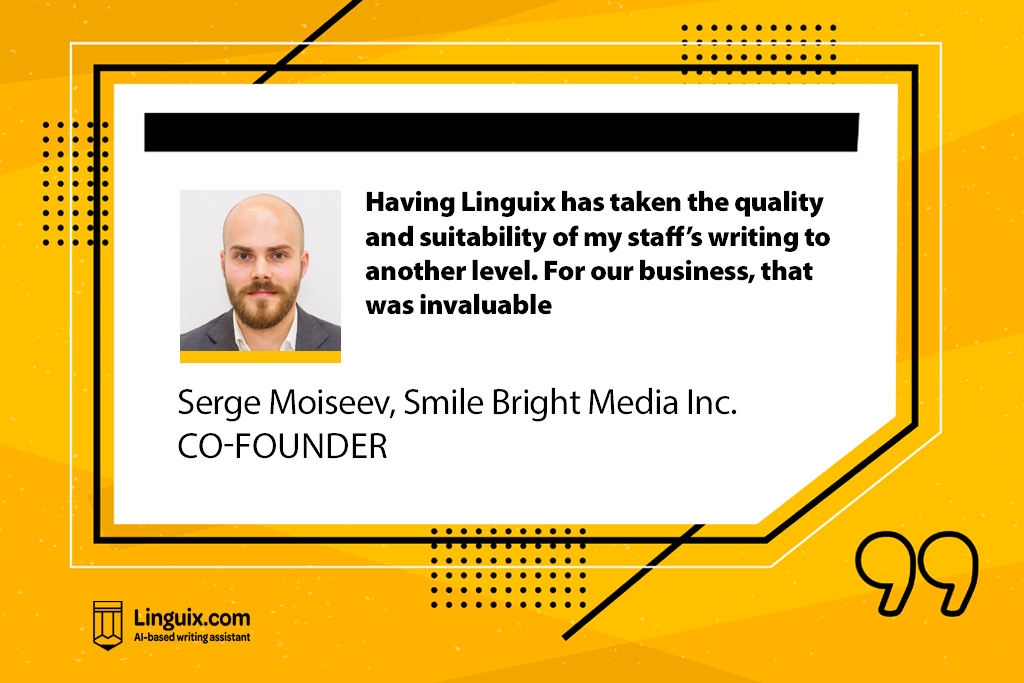 For Smile Bright Media, having Linguix not only enabled the company’s employees to consistently produce the level of professional content expected from a content marketing business, but enabled them to set content goals that were objectively assessed by a tool. Every step of the way too.