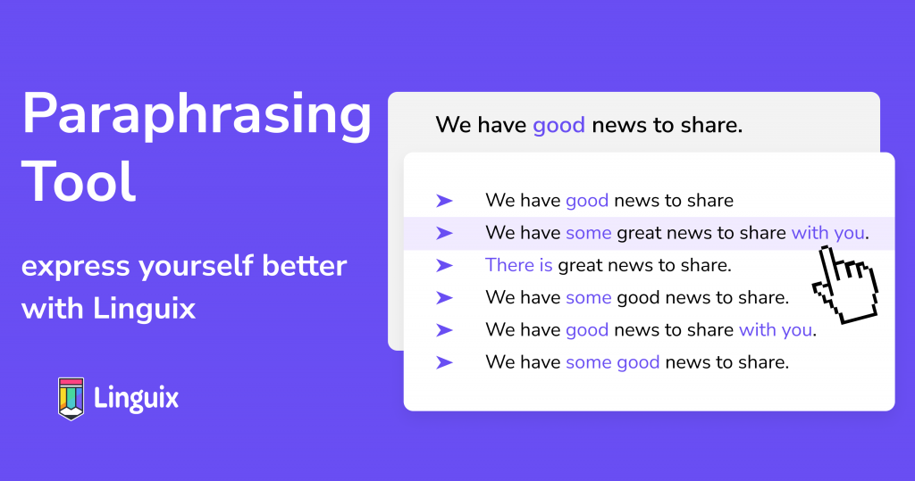 You asked, we delivered: now you can use Linguix to rewrite your content on the go! With our new paraphrasing feature you can get suggestions on how to make your writing more clear, compelling, and native. No matter what you are writing: personal emails, work documents, or just chatting on social media, Linguix helps you to express yourself better.