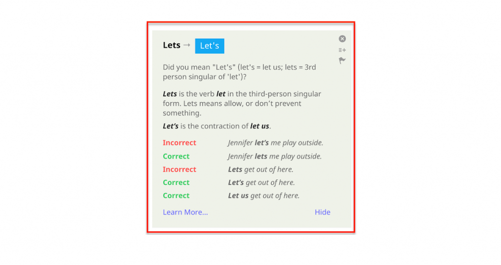 One of the top problems when using a grammar checking software is that the program only tells you what to fix. You accept the suggestion, but make the same mistake again and again.