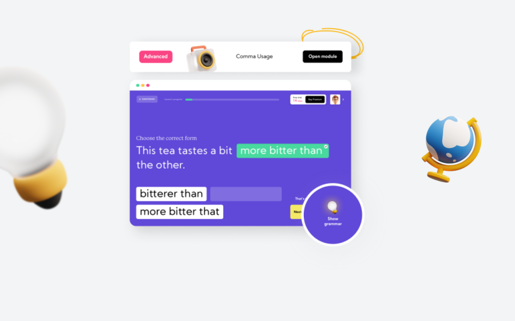 For example, I’m very keen on Linguix. It warns you about mistakes, suggests corrections, synonyms, as well as definitions of words and usage examples. In addition, if the assistant sees that you often make certain mistakes (for example, you confuse articles), it will offer you a workout to practice the corresponding rule – like in LinguaLeo or Duolingo. There is a desktop version, a browser plugin and a mobile application (iOS, Android) available. Basically, it’s a very convenient service for automatic checks and improving your texts.